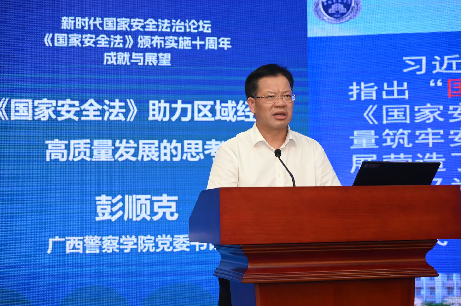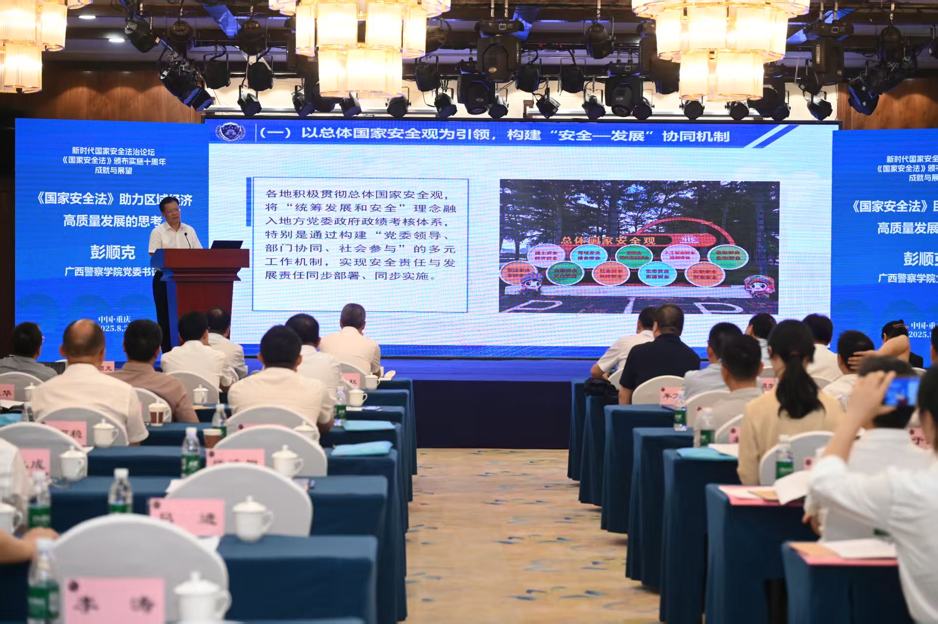 8月29日下午,彭顺克出席由重庆市法学会国家安全法学会、西南政法大学共同主办的《国家安全法》颁布实施十周年成就与展望研讨会,并作题为《<国家安全法>助力区域经济高质量发展的思考》的主旨发言。彭顺克阐释了国家安全法治与区域经济高质量发展的内在逻辑,凝练了《国家安全法》助力区域经济发展的实践路径,提出以新安全格局助力区域经济高质量发展的建议。发言引起了与会嘉宾的广泛共鸣与热烈讨论。