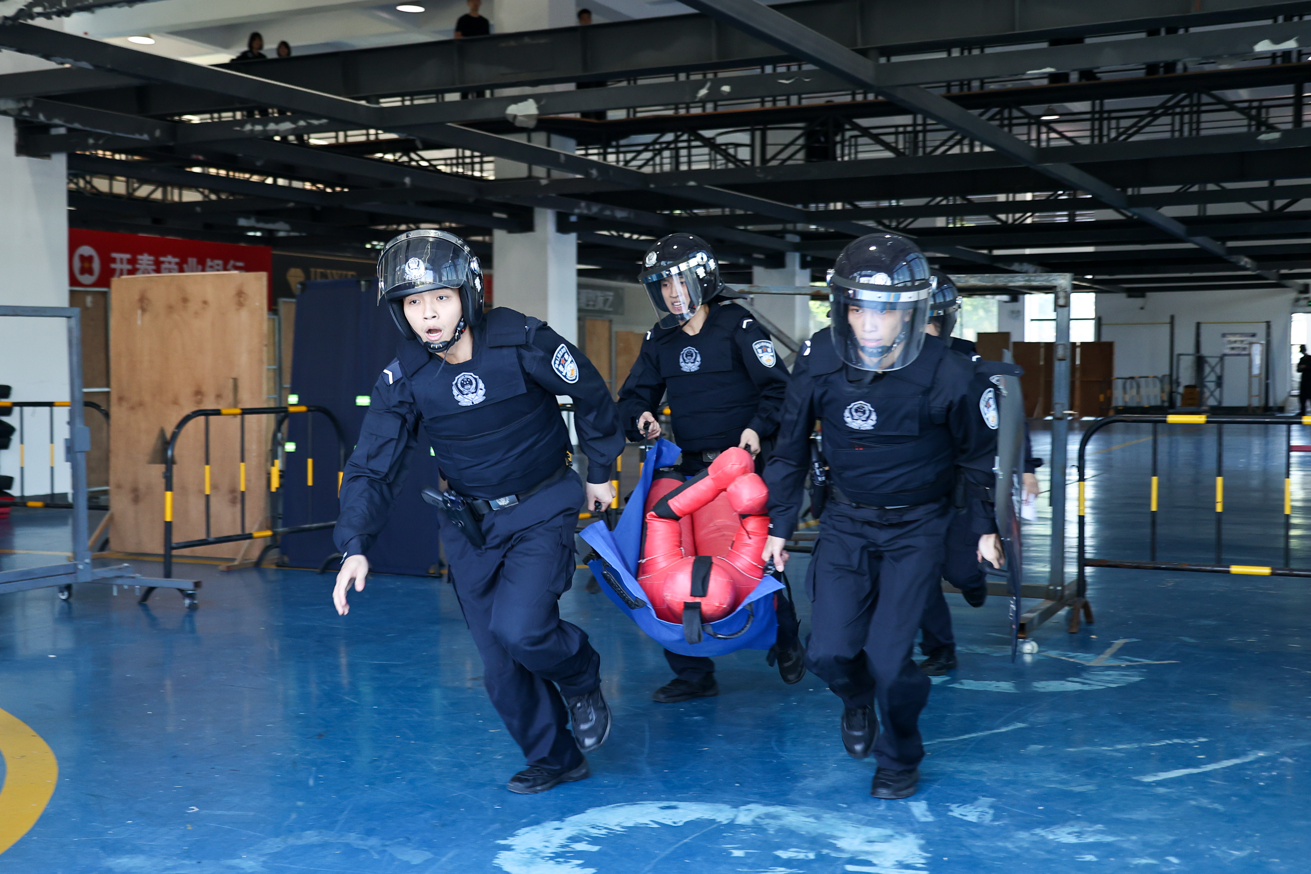 开赛仪式进行了徒手防卫控制技术、警械使用技术、战术基础动作、模拟警情综合演练等4个项目警务实战技能展示,同学们眼神坚定如炬、动作刚劲有力,每一环节均彰显日常训练的扎实功底与实战应用的快速反应能力。