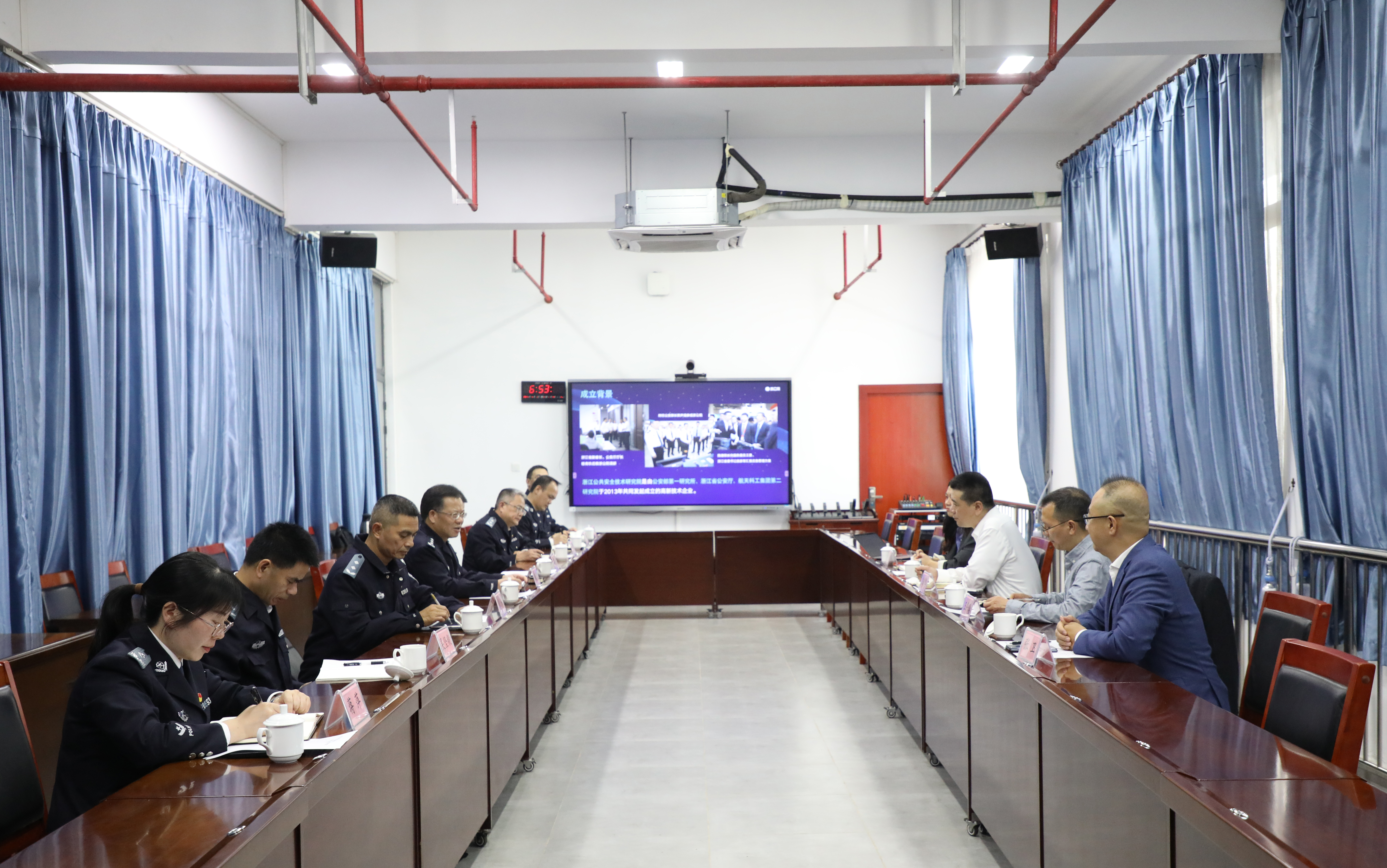 在与会领导的共同见证下,蒋超、陈港代表双方签署《共建人工智能与公共安全技术实验室框架协议》。
