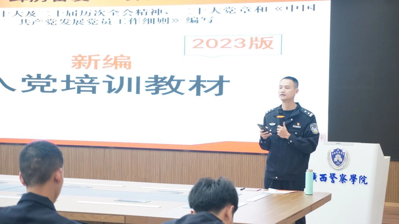 为深入贯彻落实党的二十大精神,帮助我院入党积极分子深刻认识党员的义务。我院于2023年11月份、12月份在仙葫校区智慧公安研训基地共开展四次党课培训。党课培训分别由党总支书记李德杰,党总支副书记邓新华,学生第一支部书记韦新宇,学生第三支部书记耿光明主讲。