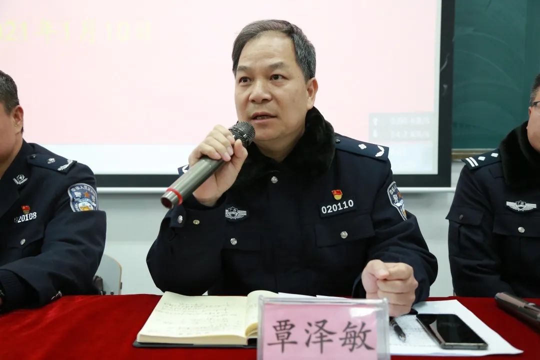 治安学院院长覃泽敏代表学院向各位民警教师和同学们致以节日的问候,对2016级成功上岸的同学表示祝贺,并预祝2017级同学在公安联考中取得优异成绩。随后,覃泽敏院长提出三点要求:一,成功转正的预备党员始终发挥先锋模范作用,以党员标准严格要求自己;二,新老党员在各自岗位中都要落实吃苦在前,享乐在后,践行使命,具备服务意识;三,进一步增强“四个意识”、坚定“四个自信”、做到“两个维护”,以优异成绩向建党100周年献礼。