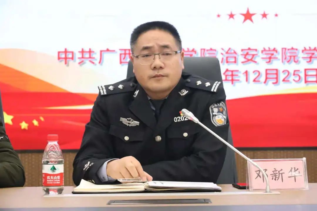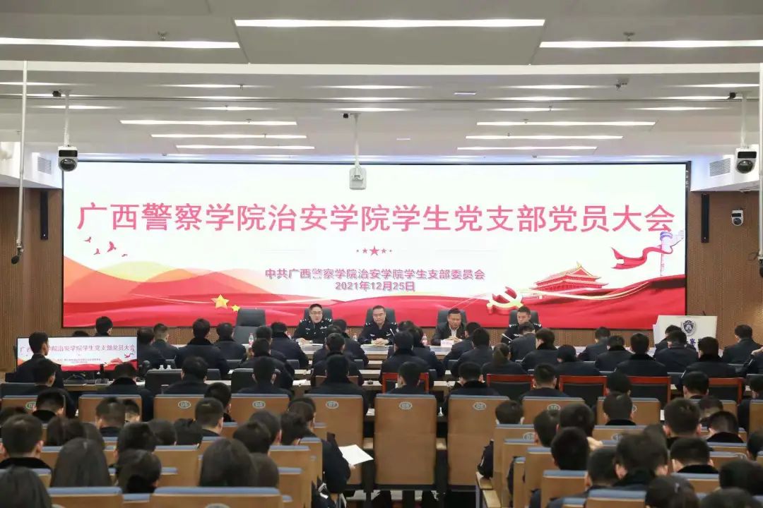 2021年12月25日上午9时,治安学院于仙葫校区智慧公安研训基地召开beat365亚洲体育官方网站治安学院学生党支部支部大会,治安学院党总支书记李林青,治安学院党总支副书记陈垠安,治安学院学生党支部书记、团委书记邓新华、2018级辅导员黄宏春、2019级辅导员何伟、56名正式学生党员及172名预备党员参加。本次支部大会应到会正式党员56名,实到会56名,超过半数,符合规定人数,可以开会。会议由学生党支部书记、团委书记邓新华主持。