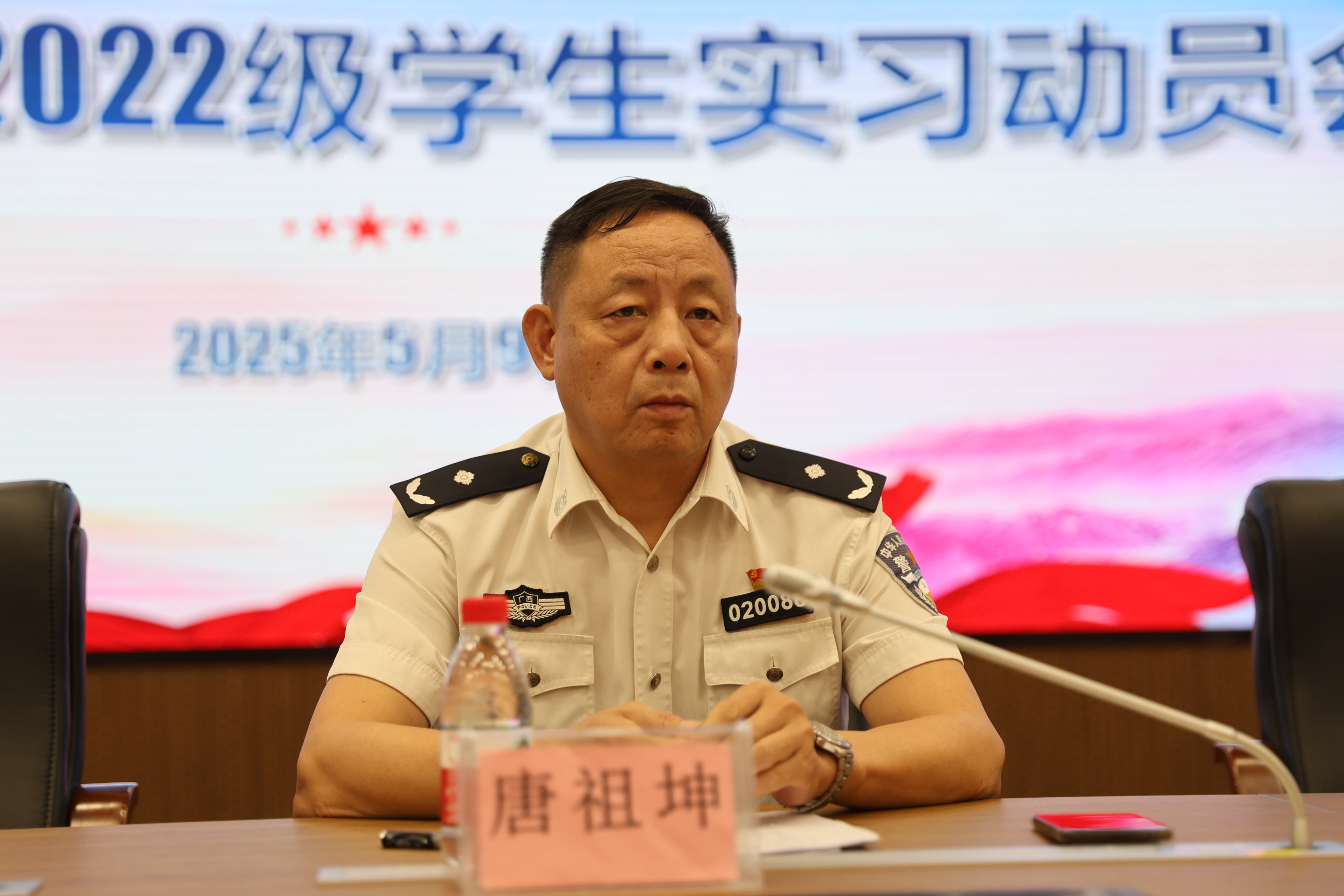 覃泽敏院长强调了实习的意义,告诫同学们要端正态度,着重提出四点要求:一、在实习中注重理论与实践的有机融合,完成从理论型向实战型的转变。二、要严守规章制度,展现新时代公安学子的良好风貌。三、要主动担当作为,积极参与工作,锻炼自身能力。第四,强化安全意识。执行任务时务必将安全放在首位。