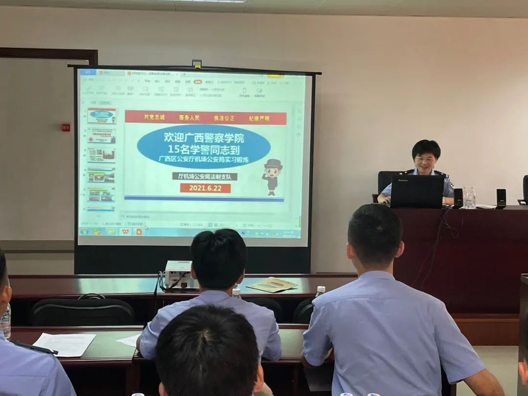 2021年6月21日,我院15名2018级学生离开学校,前往南宁市吴圩国际机场公安局进行为期四个月的实习工作。