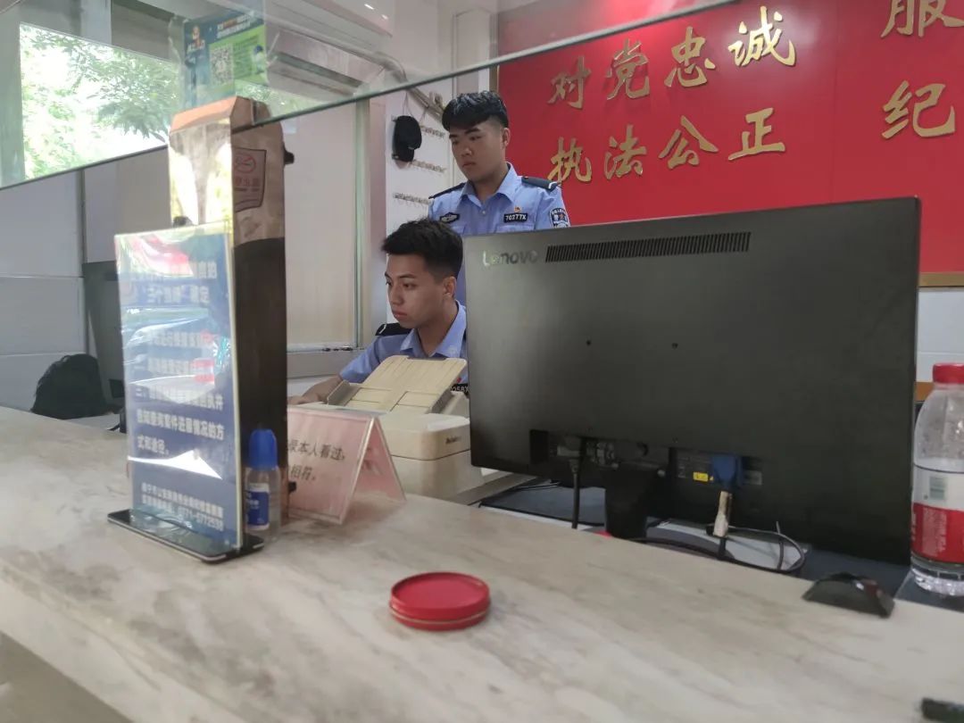 新城派出所增援学警蒋宇杰协同值班民警进行警情登记备案处理。