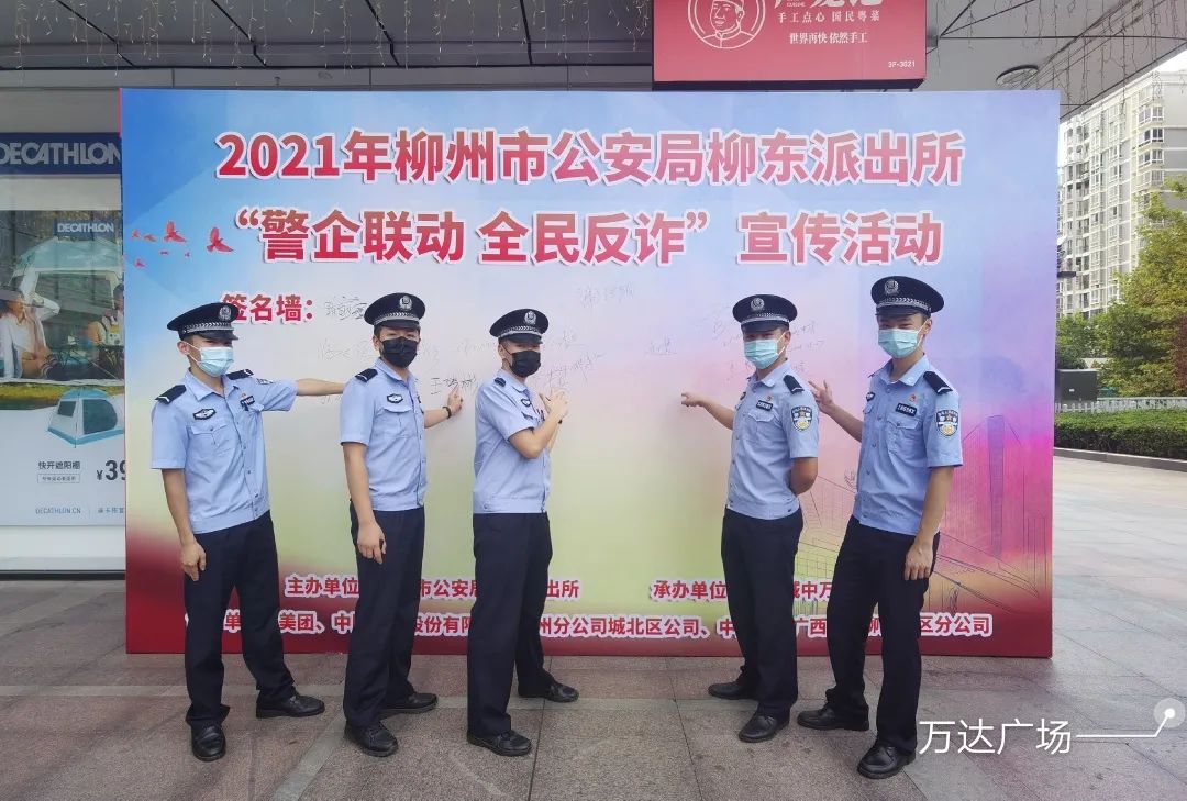国庆假期前夕,为提高辖区群众防范电信诈骗的意识和能力,柳州市公安局柳东派出所联合万达、美团等企业开展“警企联动,全民反诈”的宣传活动。
