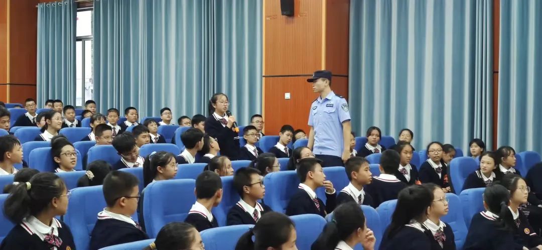 实习警姚景山给学生递话筒回答问题