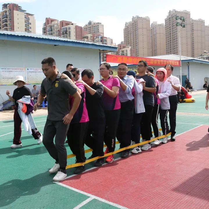 一同进行的教职工趣味运动会让老师们展现出了与以往严肃认真不同的活泼可爱。