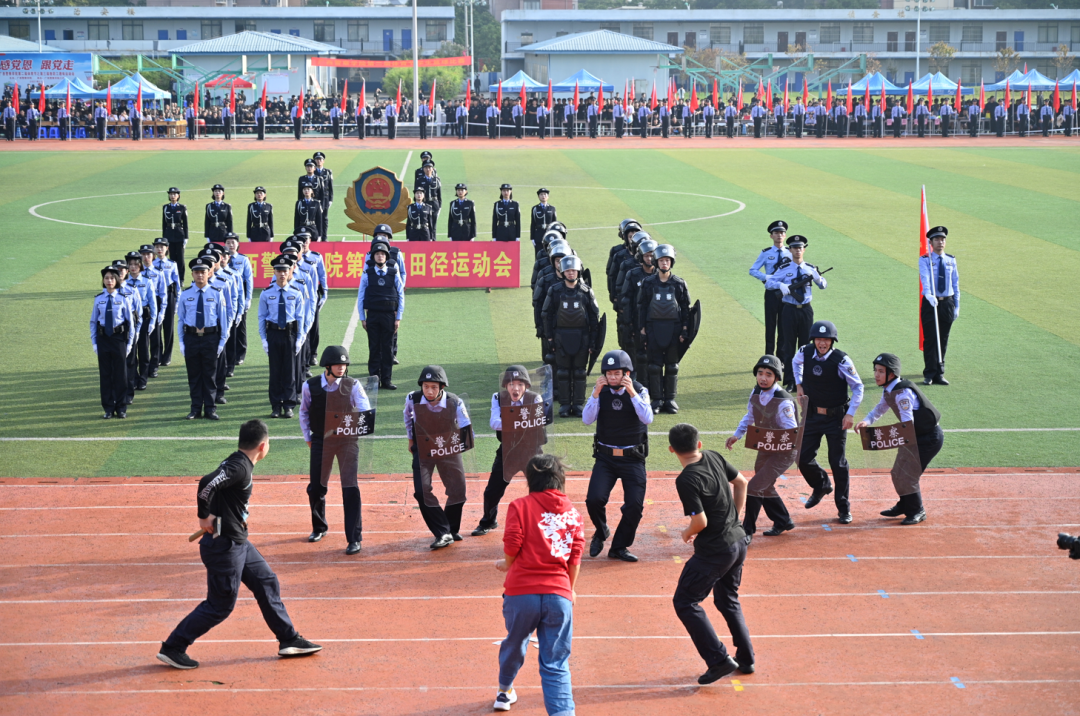 开幕式后,beat365亚洲体育官方网站第二届体育节暨公安专业学生首届警务实战技能大比武颁奖在仙葫校区田径运动场观礼台前进行。