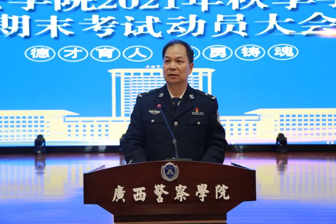 最后,覃泽敏院长对获表彰的先进个人、集体表示祝贺,并强调了同学们在今后的学习生活中戒骄戒躁,以谦虚的姿态继续前进,随后对同学们提出四点要求,一是养成良好的学习习惯和纪律作风,严格按照警务化管理规定要求自己;二是要有顽强的毅力,为成为“四个铁一般”的公安人才而努力奋斗;三是要在红海里学习经验,在蓝海里乘风破浪;四是合理安排复习时间,全身心投入到期末复习中。