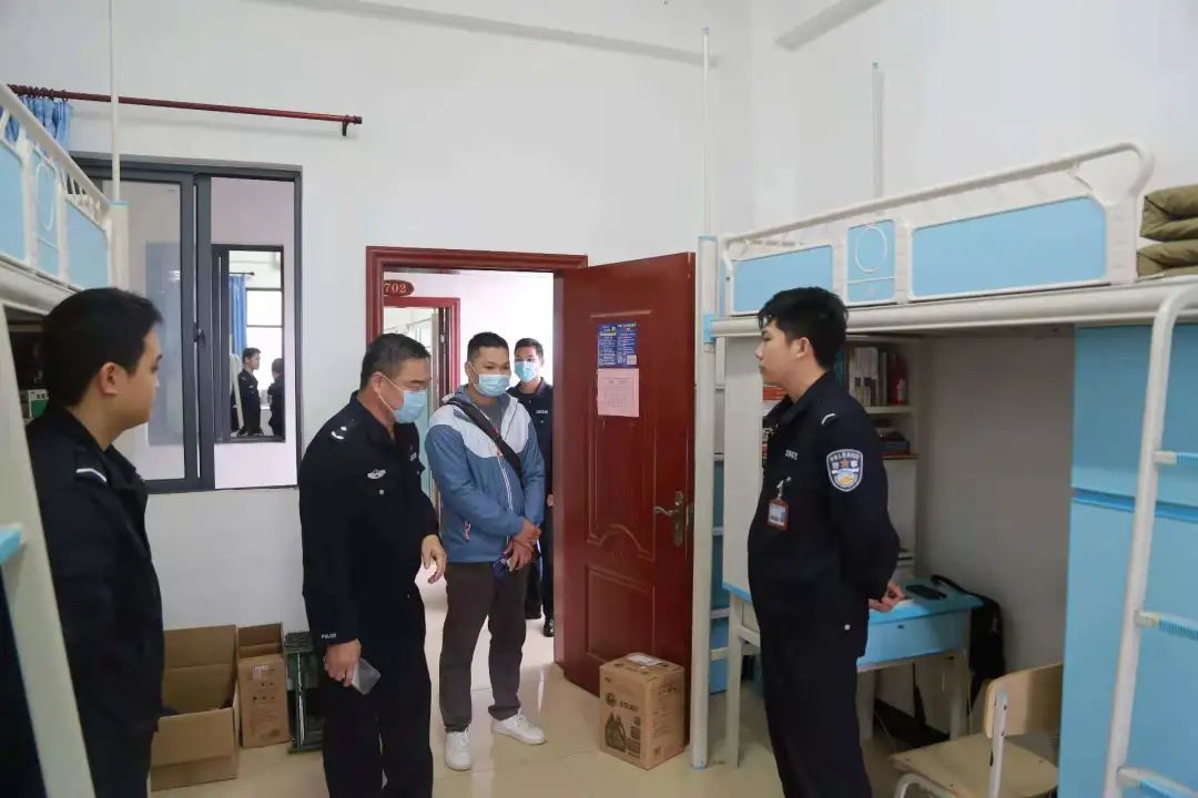 李林青书记还对同学们提出了三点要求,一是疫情在宿舍上网课期间,需要按警务化要求着装,不能出现警便服混搭,要以饱满的精神去上好每一节网课;二是告诫同学们在宿舍备勤期间不能使用大功率电器蒸煮食物等,加强防火意识,注意在校用电安全;三是提醒同学们离开床铺时叠好被子,并认真做好宿舍内务,保持宿舍清洁,减少病菌滋生,营造良好的宿舍环境。