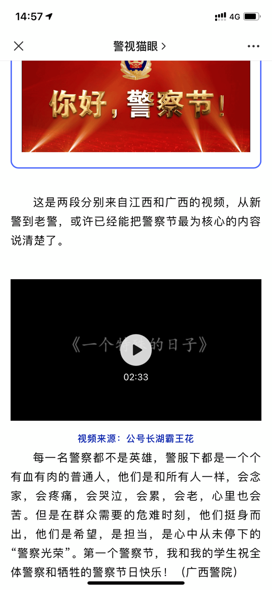 周炎自制庆祝视频被警察自媒体长湖霸王花、警视猫眼相继转发