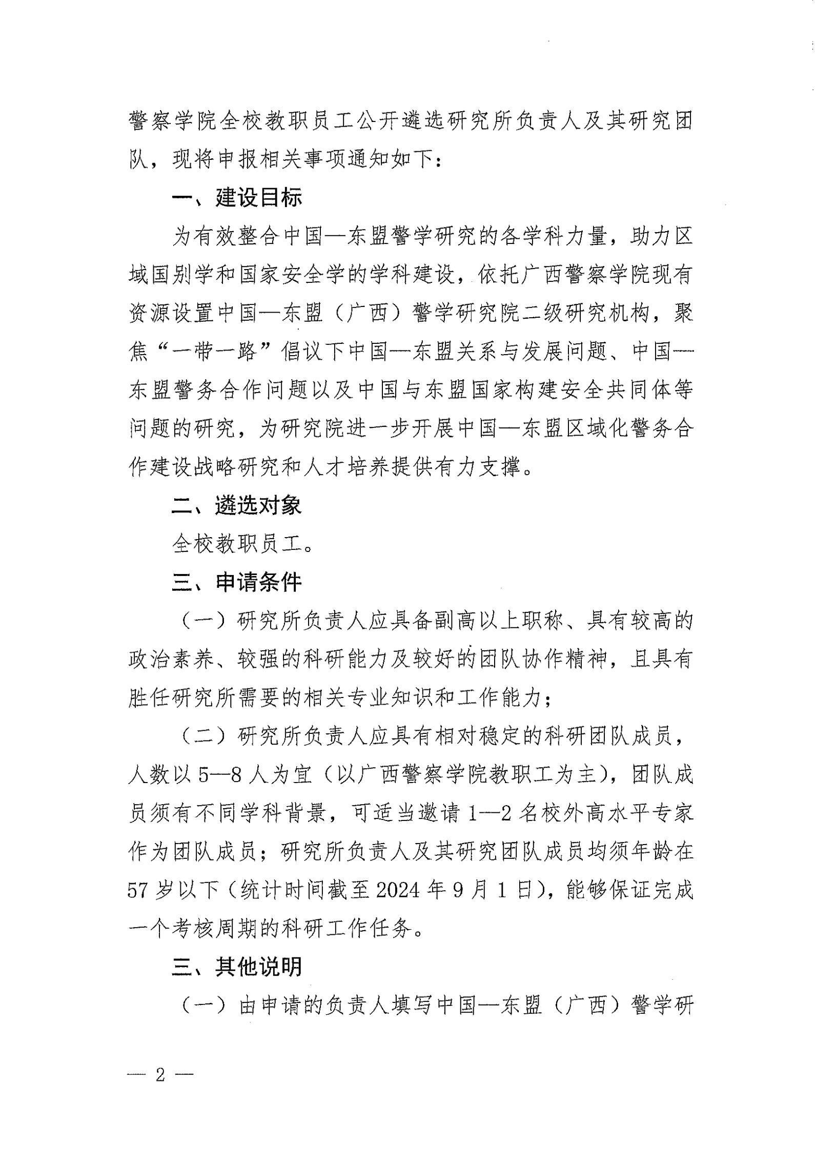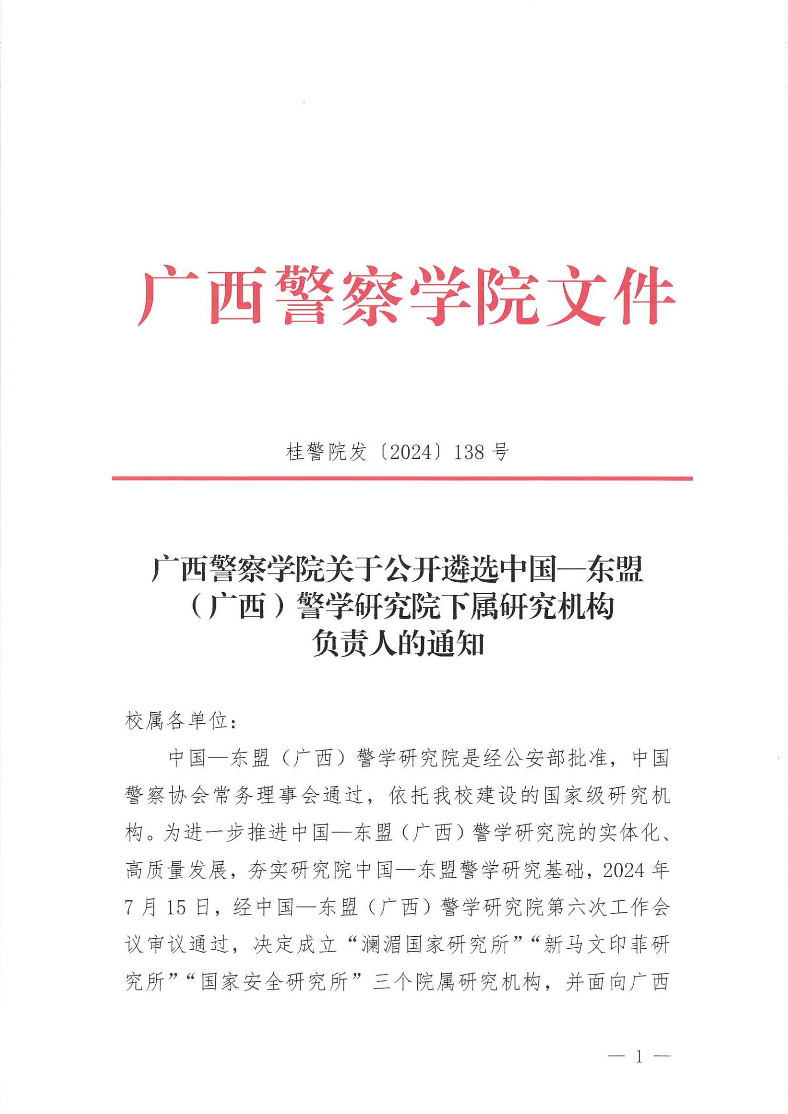 beat365亚洲体育官方网站关于公开遴选中国—东盟 (广西)警学研究院下属研究机构负责人的通知 来源: 发布时间:2024-07-26 17:25:26 浏览次数: 次 【字体:小 大】 附件:中国—东盟(广西)警学研究院二级研究机构负责人应聘表.doc 分享到: 【打印正文】