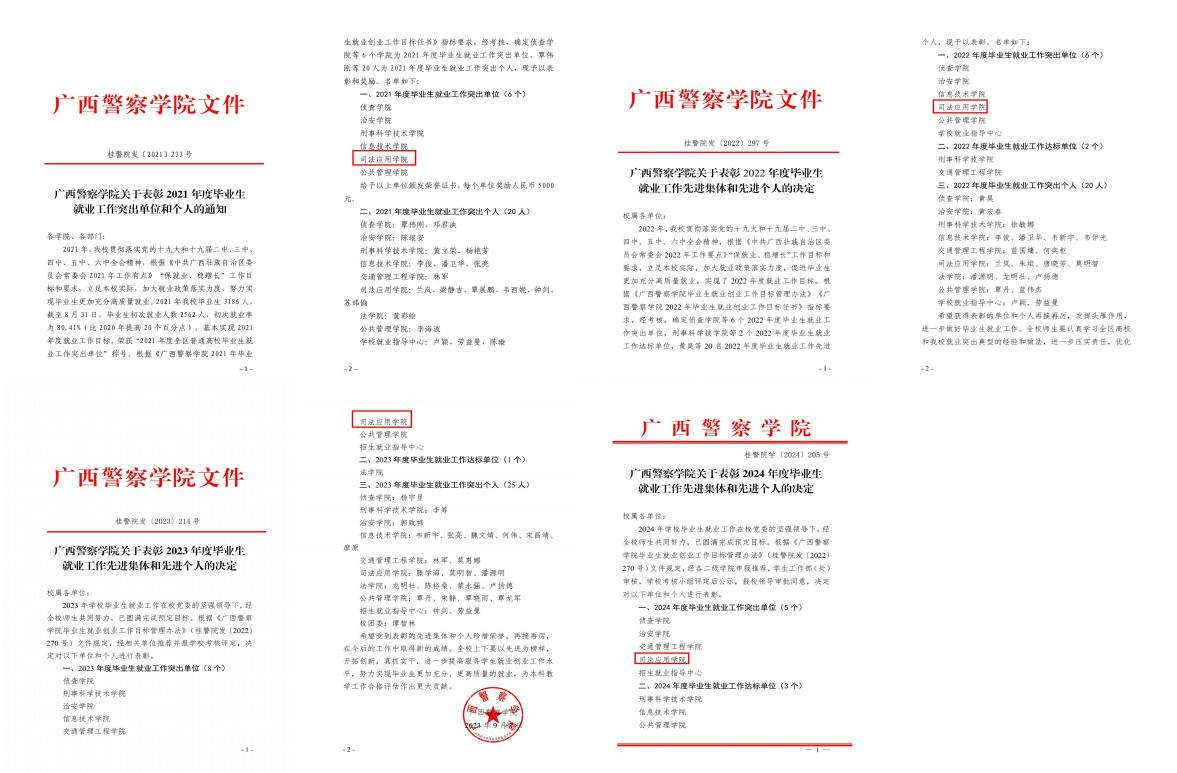 育人成果丰硕喜人。学生创新能力显著增强,参加“挑战杯”中国大学生创业计划竞赛获全国总决赛铜奖1项,其他自治区级以上奖项35项,主持大创项目49项(其中国家级项目4项)。毕业生以“政治坚定、业务精通、作风过硬”的鲜明特色获得用人单位的高度评价,人才培养质量获得司法行政系统及社会各界高度认可。