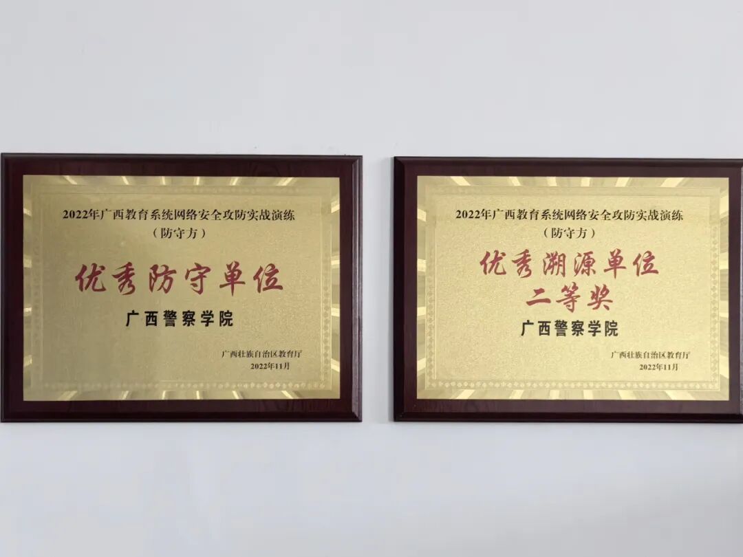 2022年获得广西教育系统网络安全攻防实战演练(防守方)优秀溯源单位二等奖和优秀防守单位的荣誉